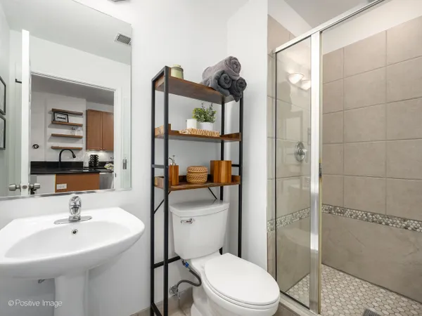 Welcome to The Montrevelle in the heart of River West and next door from Fulton Market! Enjoy unbeatable convenience just steps from top-rated restaurants, trendy cafes, and the Blue Line stop. Heated garage parking deeded separately for sale at 25k. Step inside your move-in-ready condo filled with natural light and an inviting open layout. The kitchen features granite countertops, a breakfast bar, under-cabinet lighting, and tall 42" maple cabinets. It opens to a spacious living area big enough for dining table and includes a cozy gas-start fireplace and access to your private balcony with stunning north and east city views. The primary suite offers a spa-like feel with marble tile, a whirlpool tub, and a generous walk-in closet-perfect for anyone who loves to shop or simply unwind in style. In-unit laundry adds everyday convenience. This location can't be beat-right across the hall from the fitness room and community sundeck, making it easy to enjoy a morning workout or relax with skyline views. This is the same two-bedroom floor plan found in other units, but the owners have opened up the space by removing doors for a more flexible, modern layout. Don't miss your chance to own a bright, stylish home in one of River West's most desirable buildings!